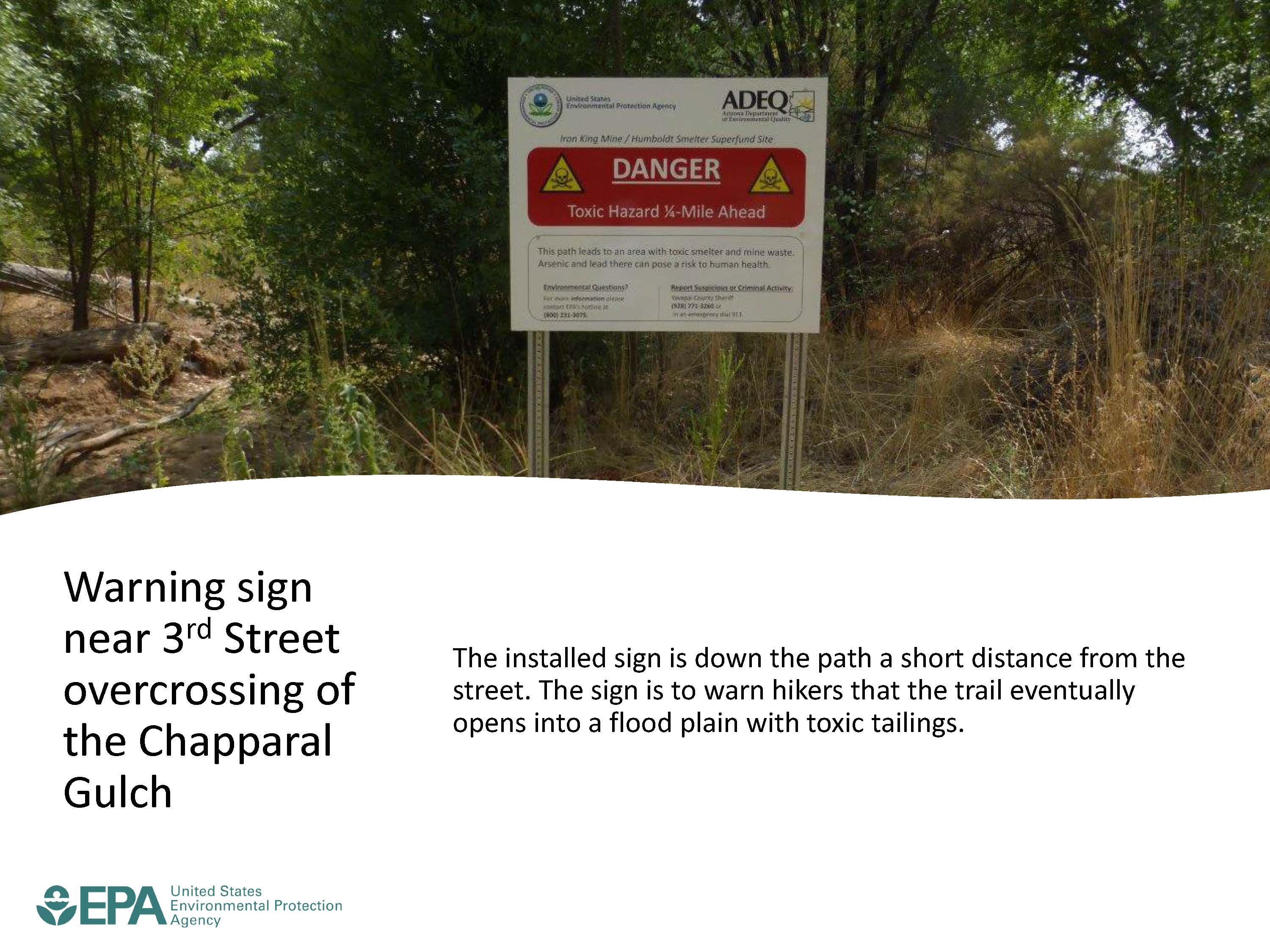 Warnings Signs Humboldt Smelter; 3rd Street Warning Sign; Iron King Mine Road Warning Signs; Superfund Site Contacts